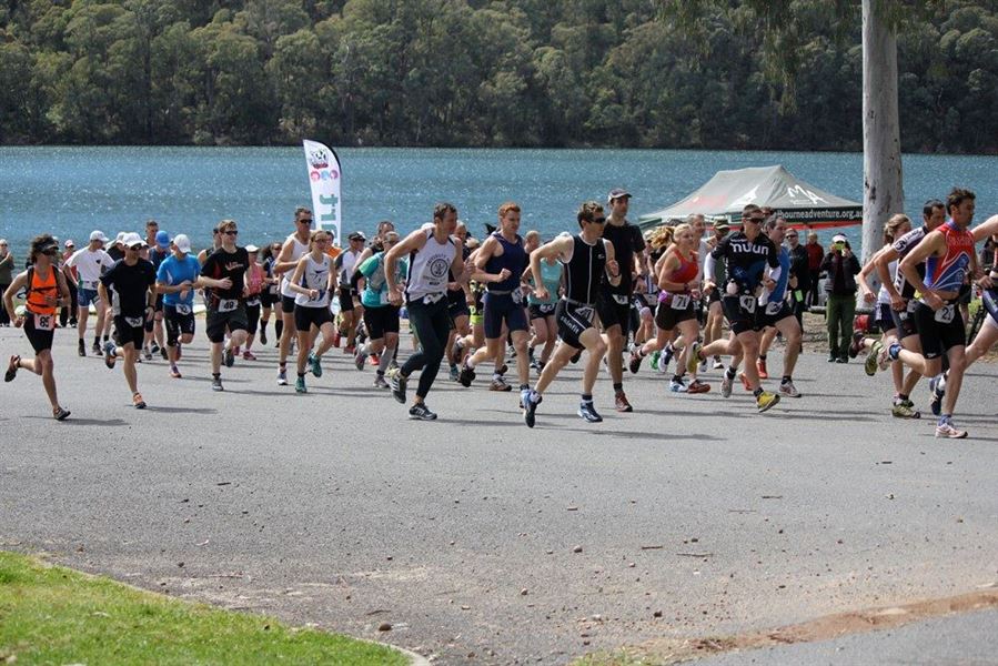 The event starts with a 98km cycle from Mansfield to Eildon, then a 25km paddle from Eildon to Bonnie Doon, and finishes with a 21.1km run from Bonnie Doon back to Mansfield.